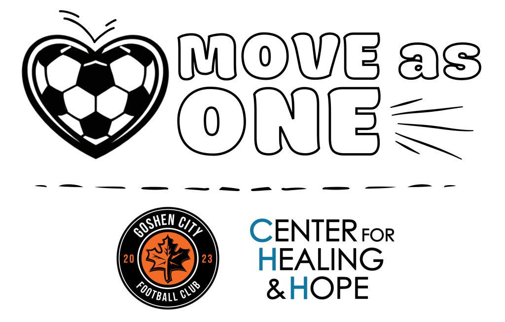 Move as One is a partnership between Center for Healing & Hope and Goshen City FC. We’re kicking things off on Saturday, May 2nd!