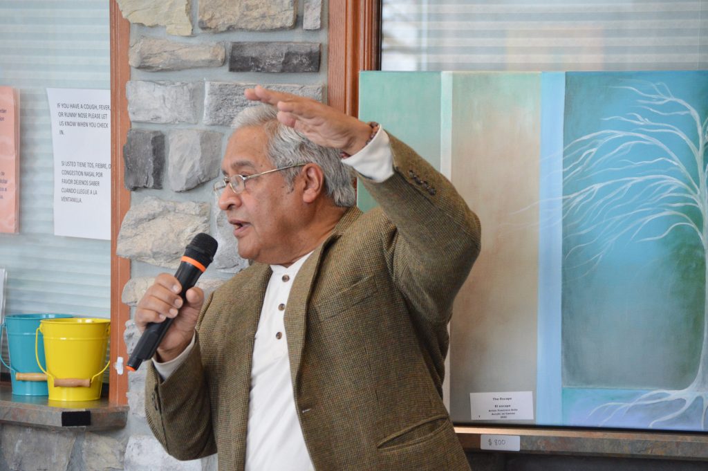 Around 3:30, Francisco was introduced by Missy. He shared details about his life, the exhibit, and the ways it came to be. “Good afternoon. Thank you for being here. My name is Francisco Avila. I was born in Venezuela, and for about thirty-five years, the United States has also been my home. Both places live in my heart.”